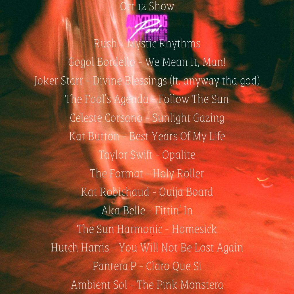 August 18, 2021 playlist for Music From The Fort – music to annoy your co-host.